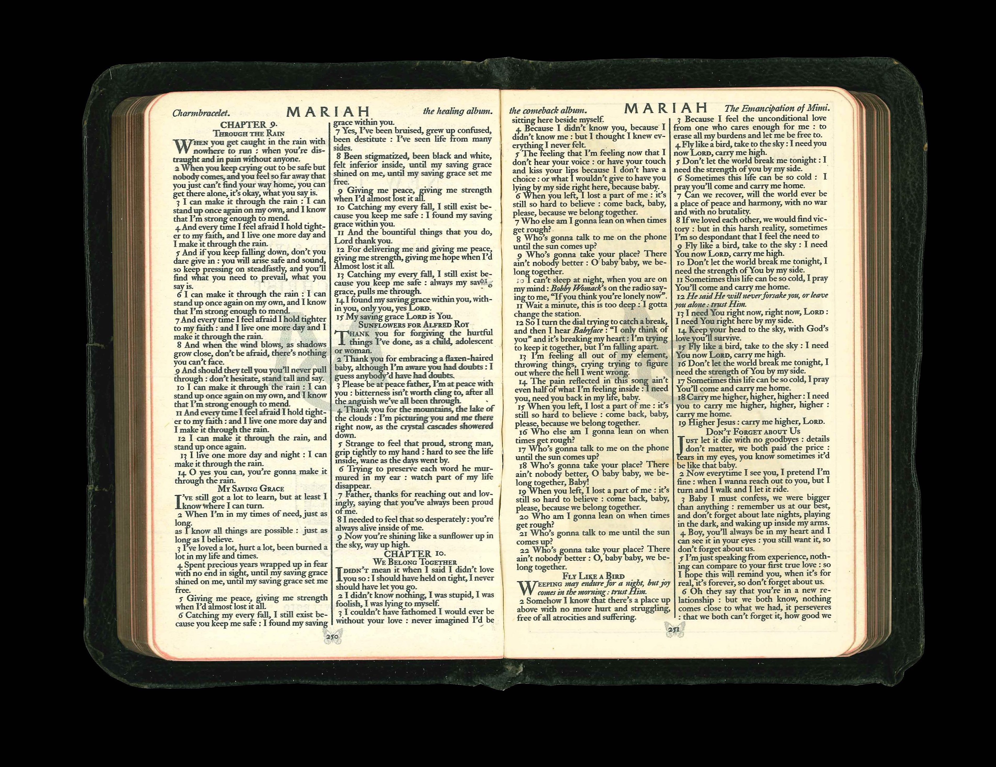 BIBLES THAT ARE PHYSICALLY MODIFIED TO REPLACE THE ORIGINAL SCRIPTURES WITH LYRICS.