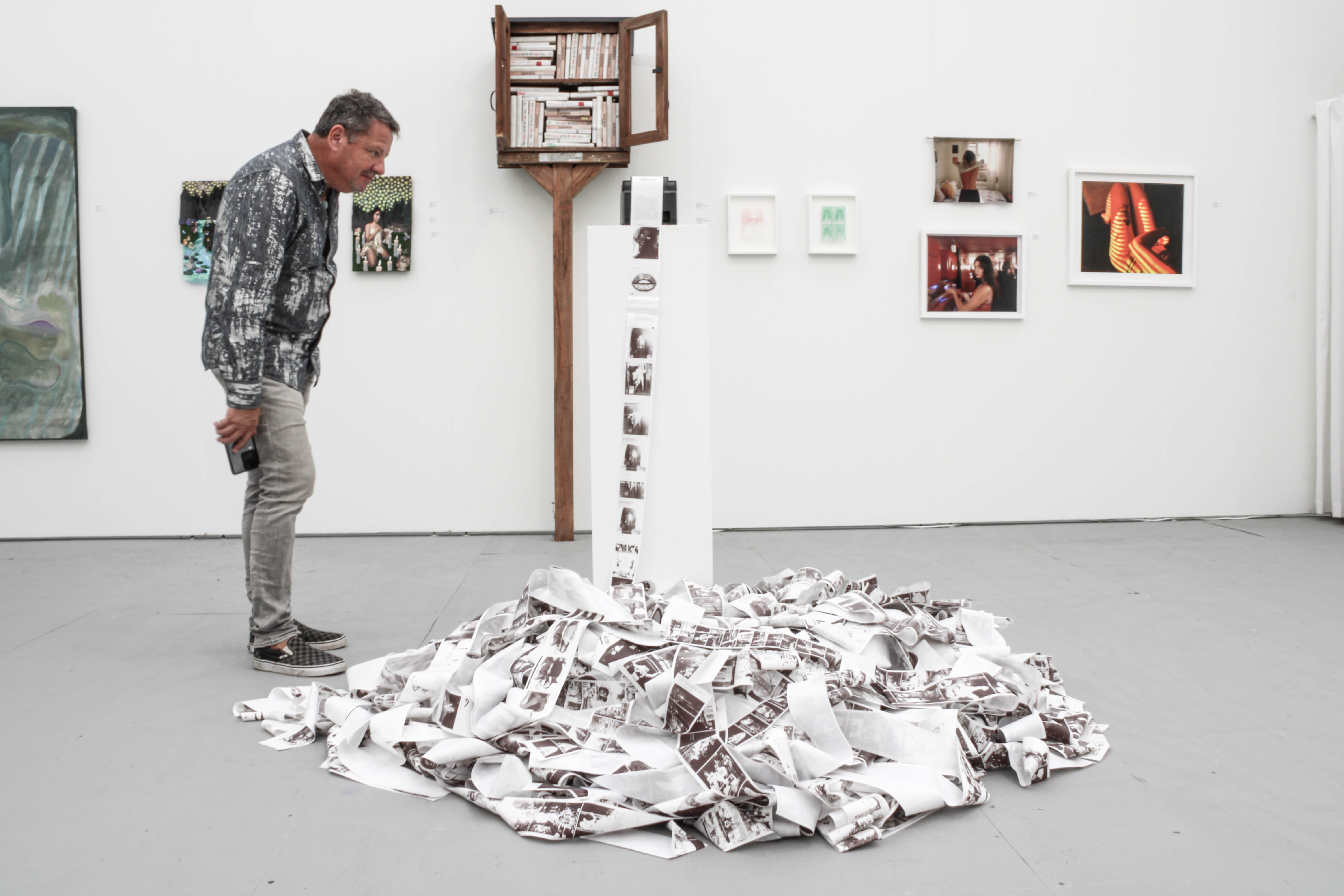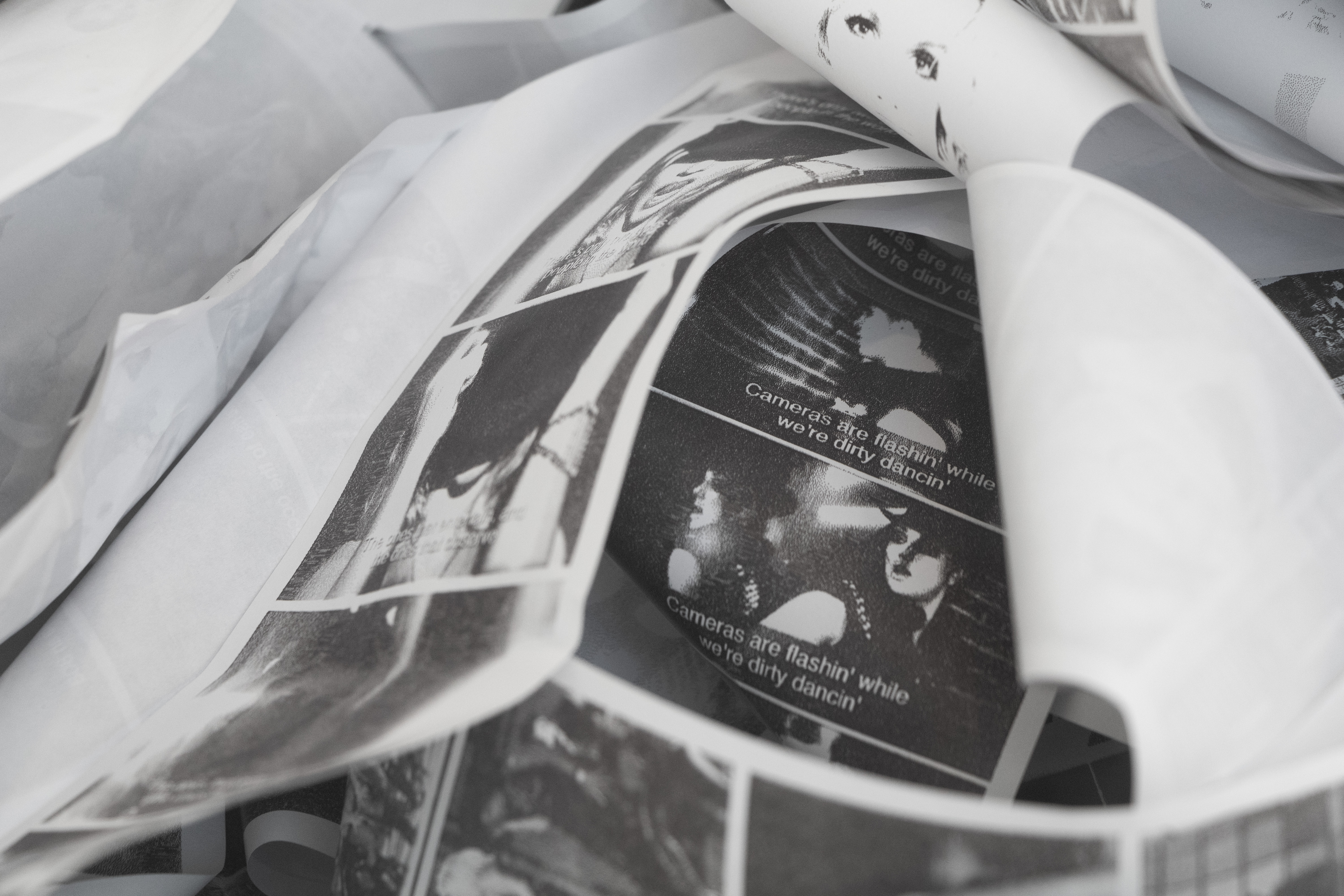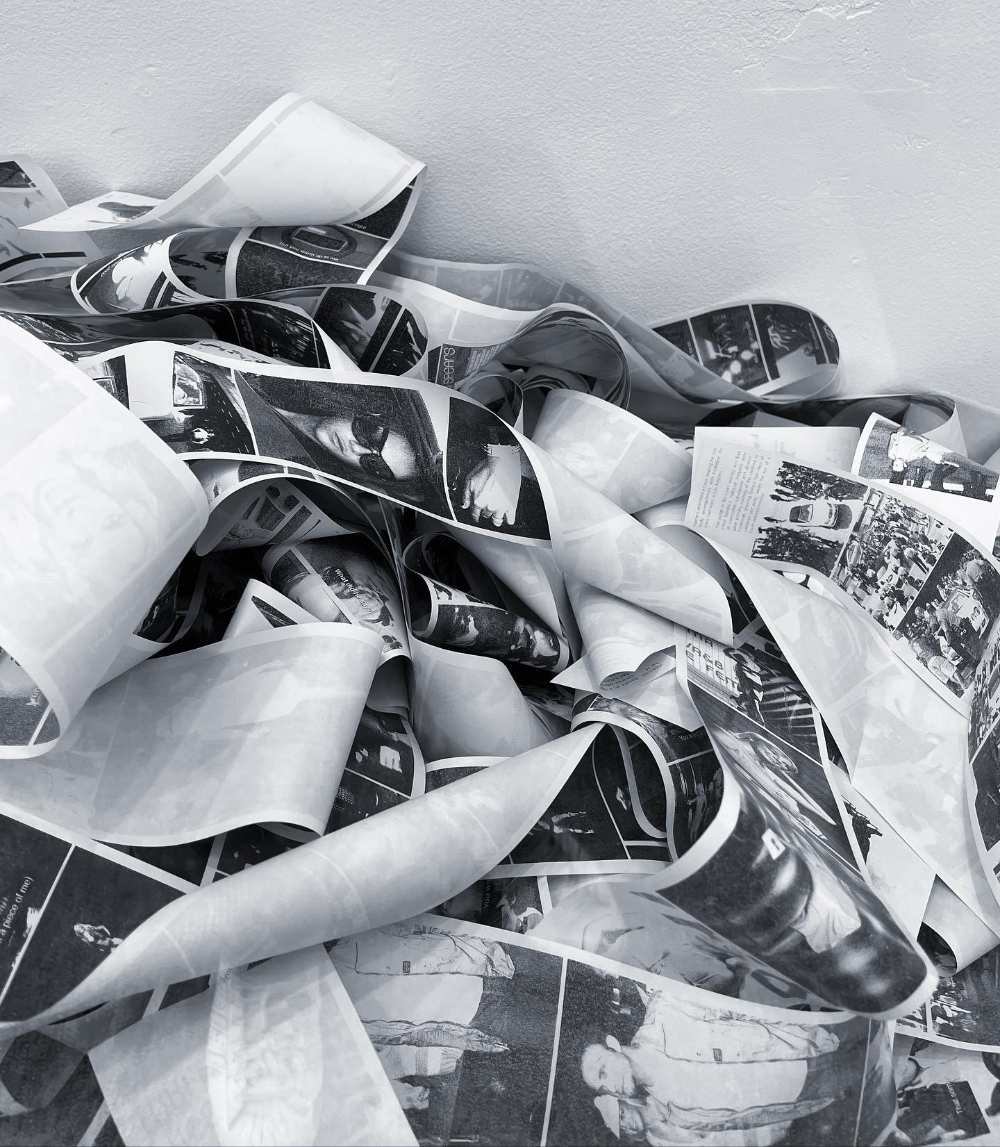 Automated through a custom-built computer program, the work functions as both archive and sculpture—transforming ephemeral media into physical detritus. As the rolls of thermal paper grow, they bear witness to shifting technologies, evolving celebrity culture, and the mechanics of surveillance and spectacle.