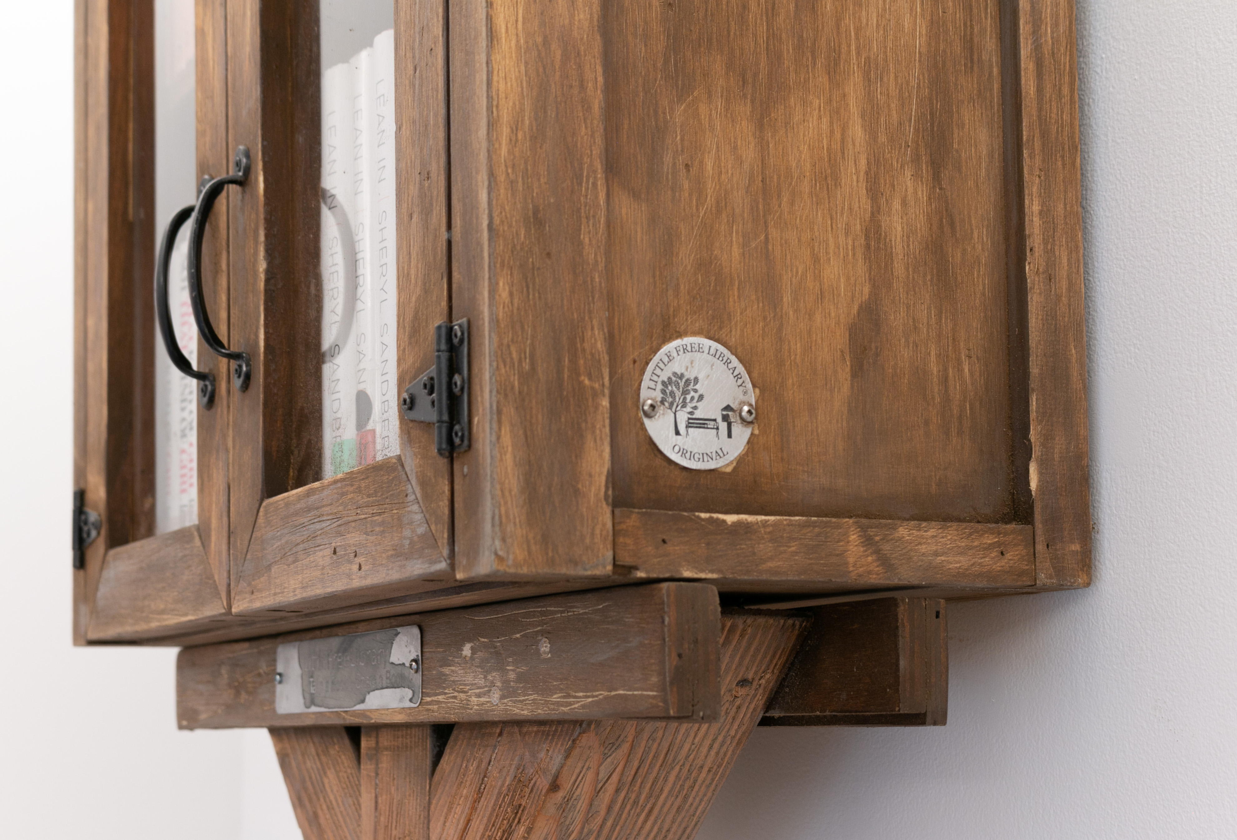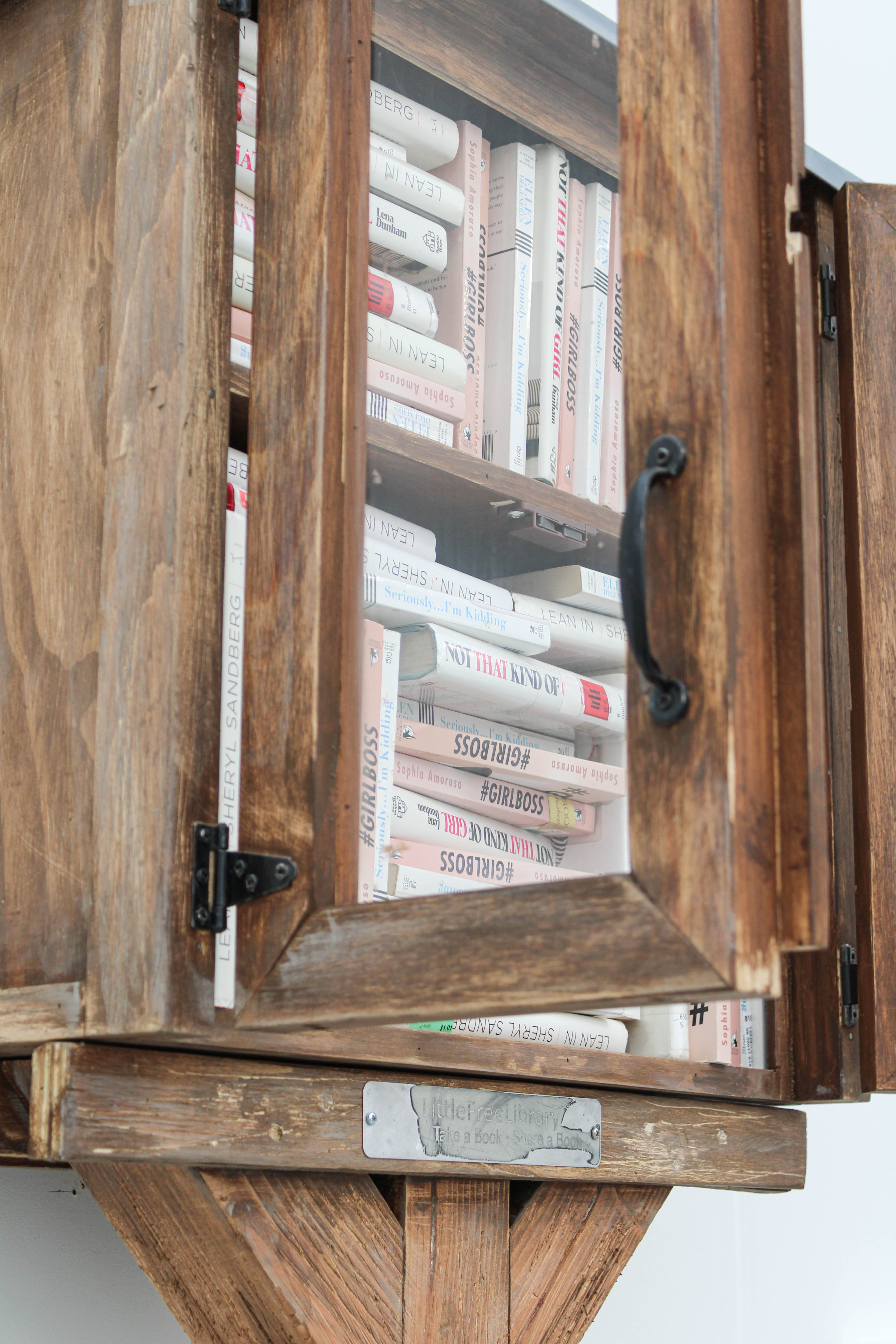 Medium: secondhand books, little free library, wood, hardware, seedling