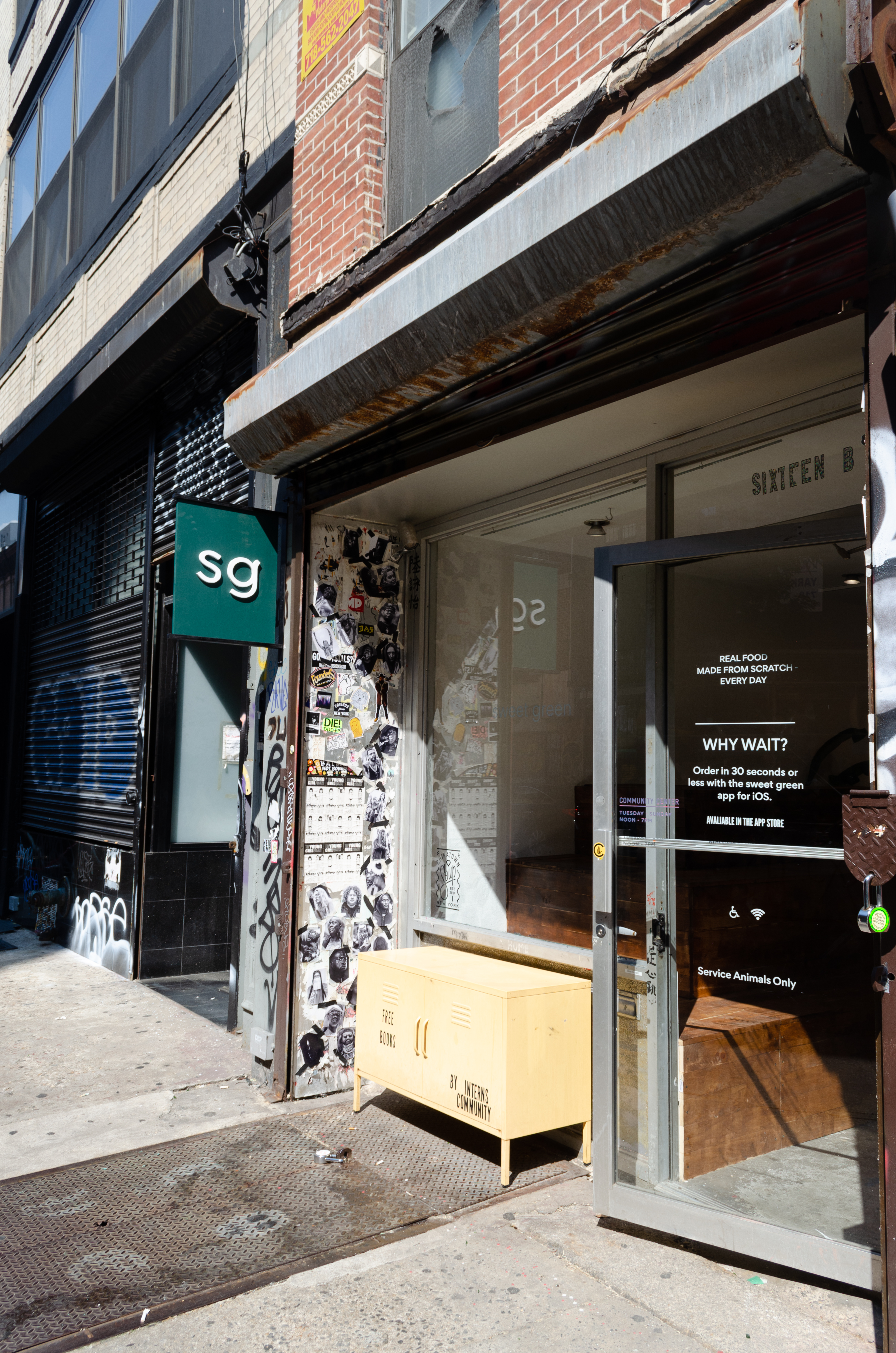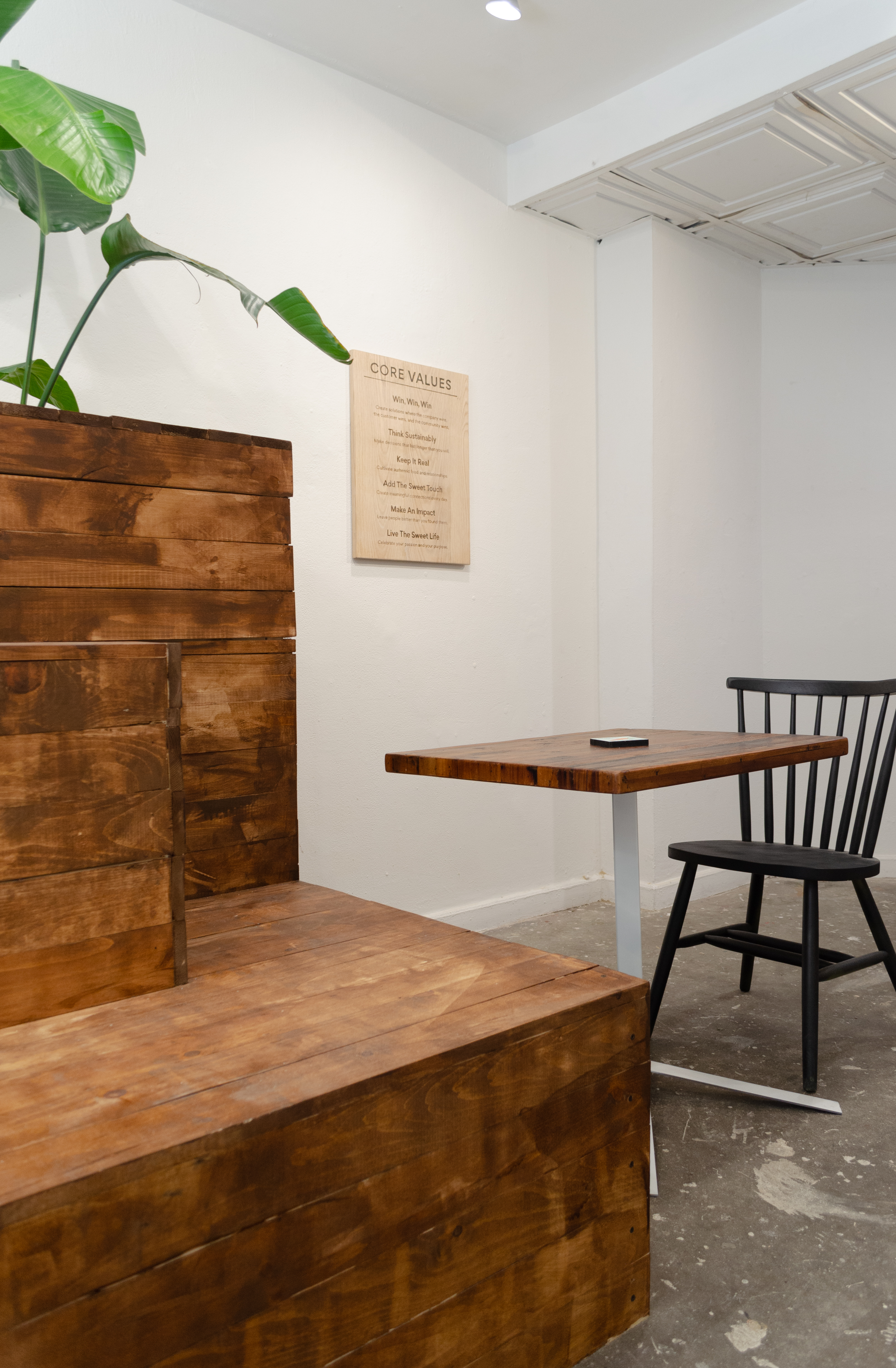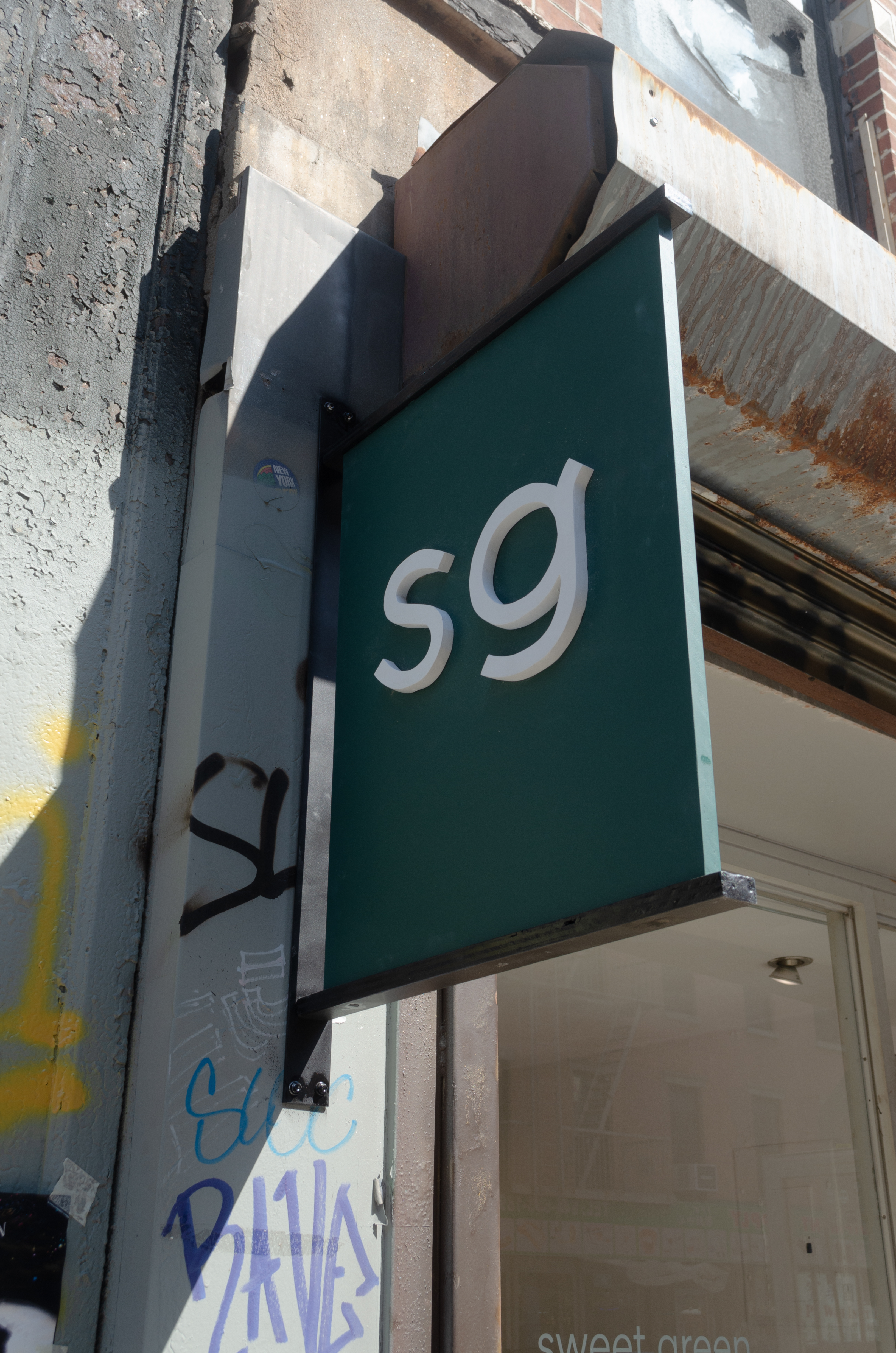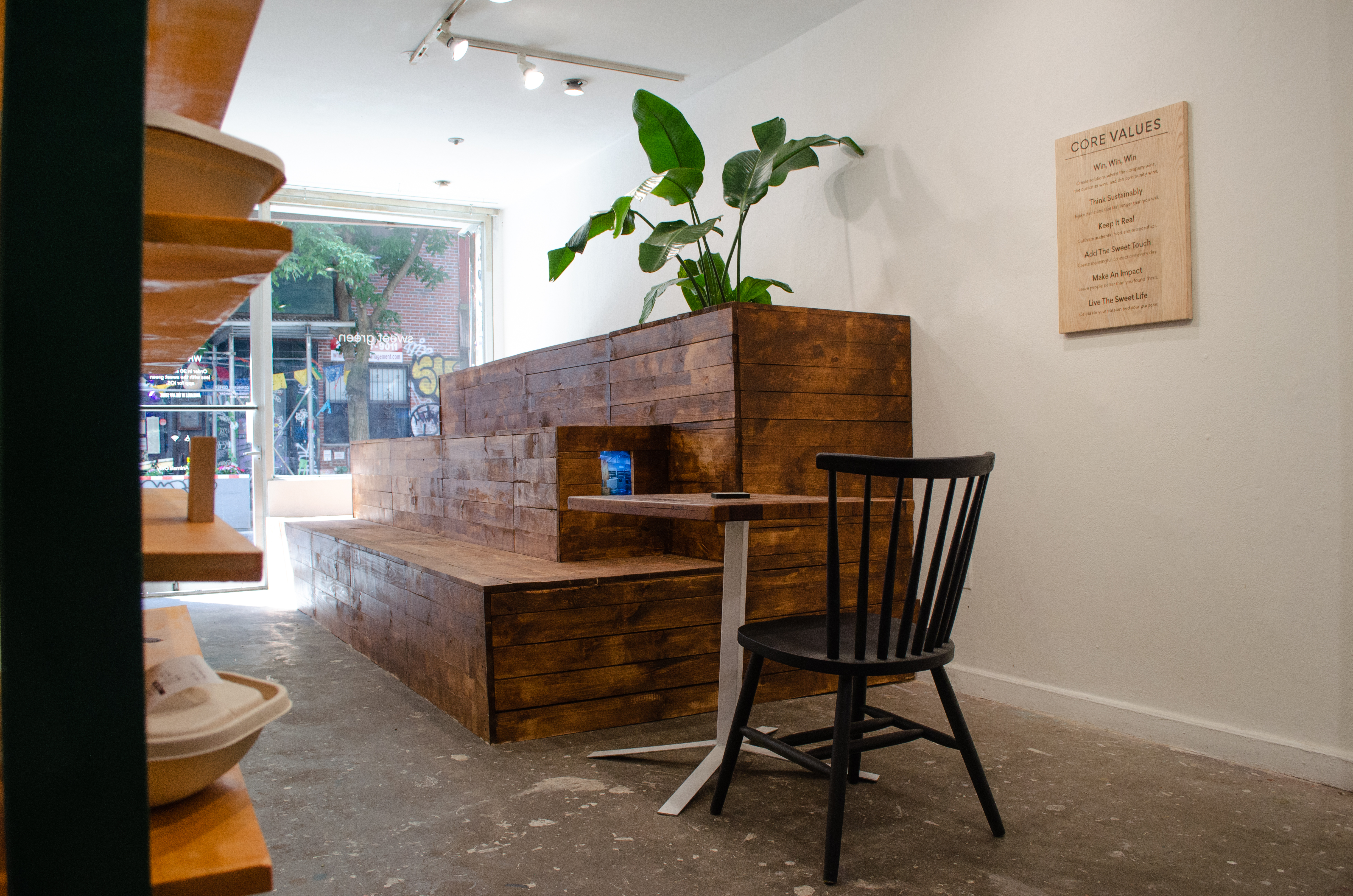 In this immersive installation, a storefront gallery was transformed into a hand‑crafted simulacrum of the Sweetgreen brand, from the “sg” signage and online‑order pickup shelves to communal benches and tables. Every sculptural element—from branding decals to furnishings—was fabricated by the artist’s labor.