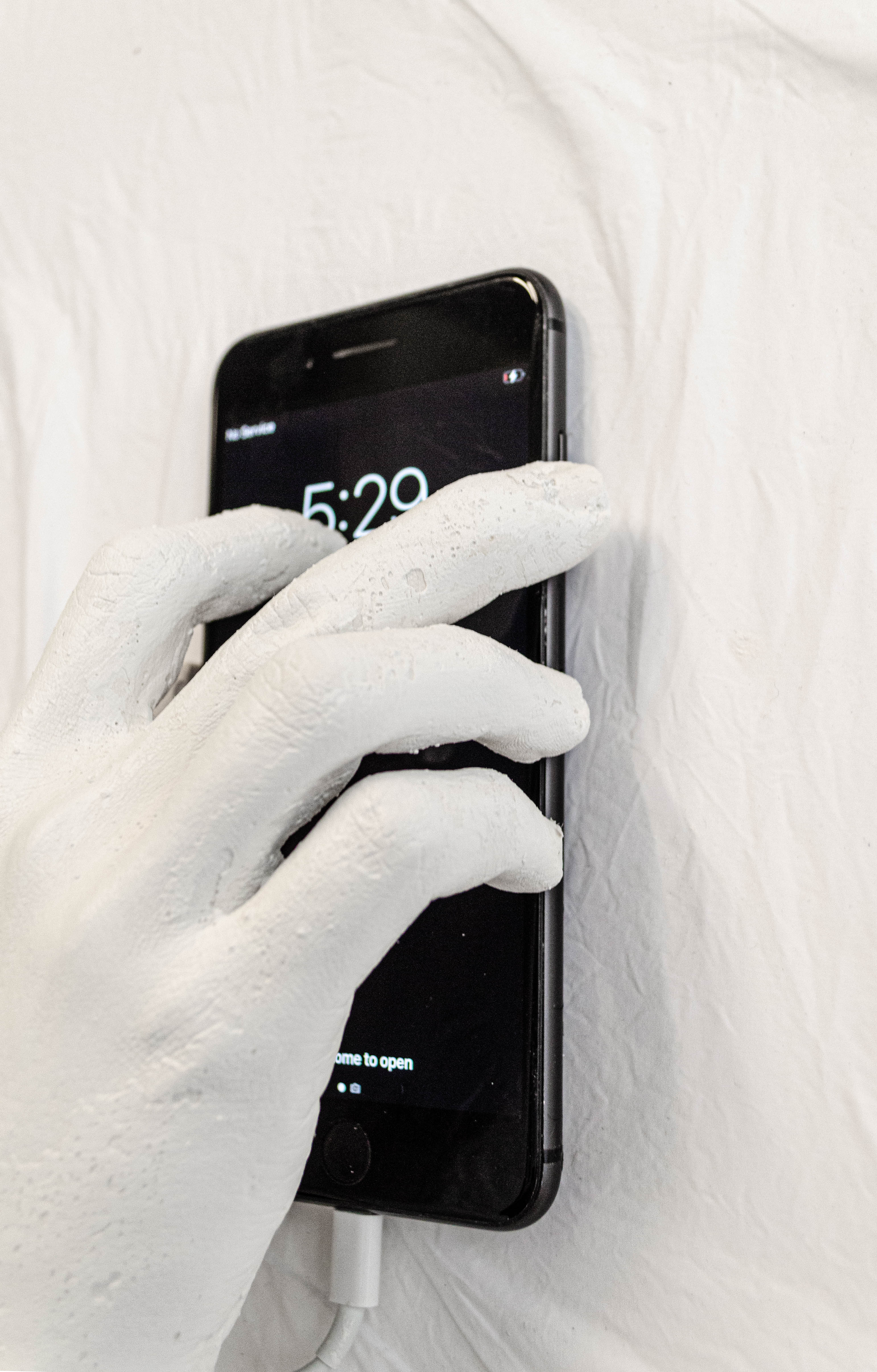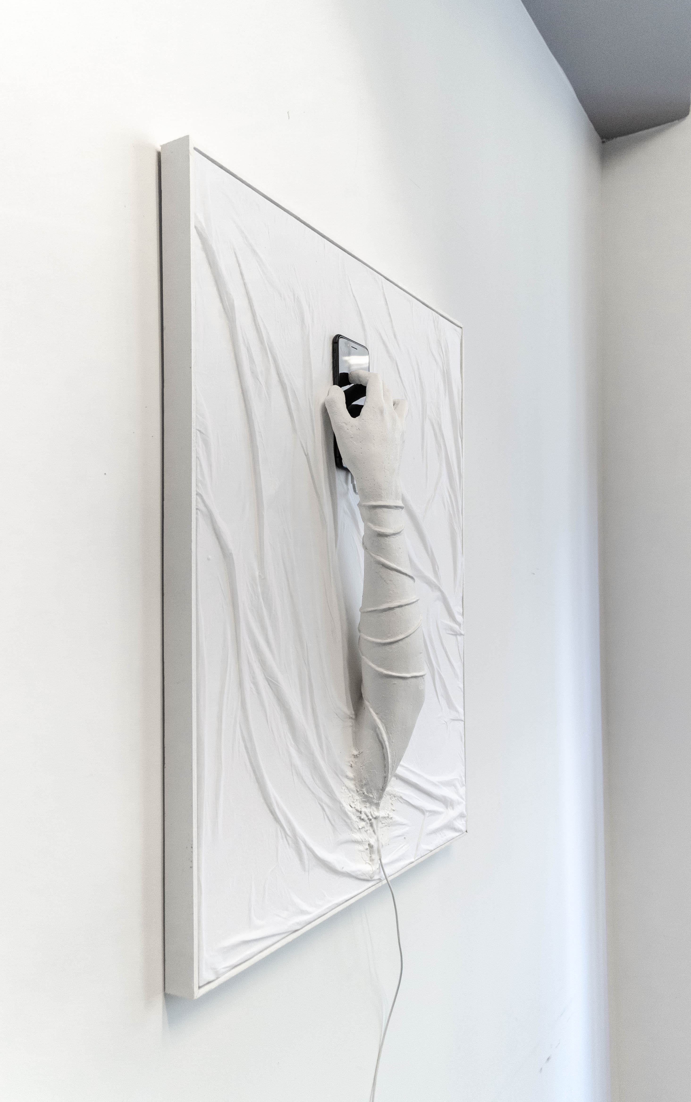 Medium: Plaster, Linen, Charging Wire, iPhone