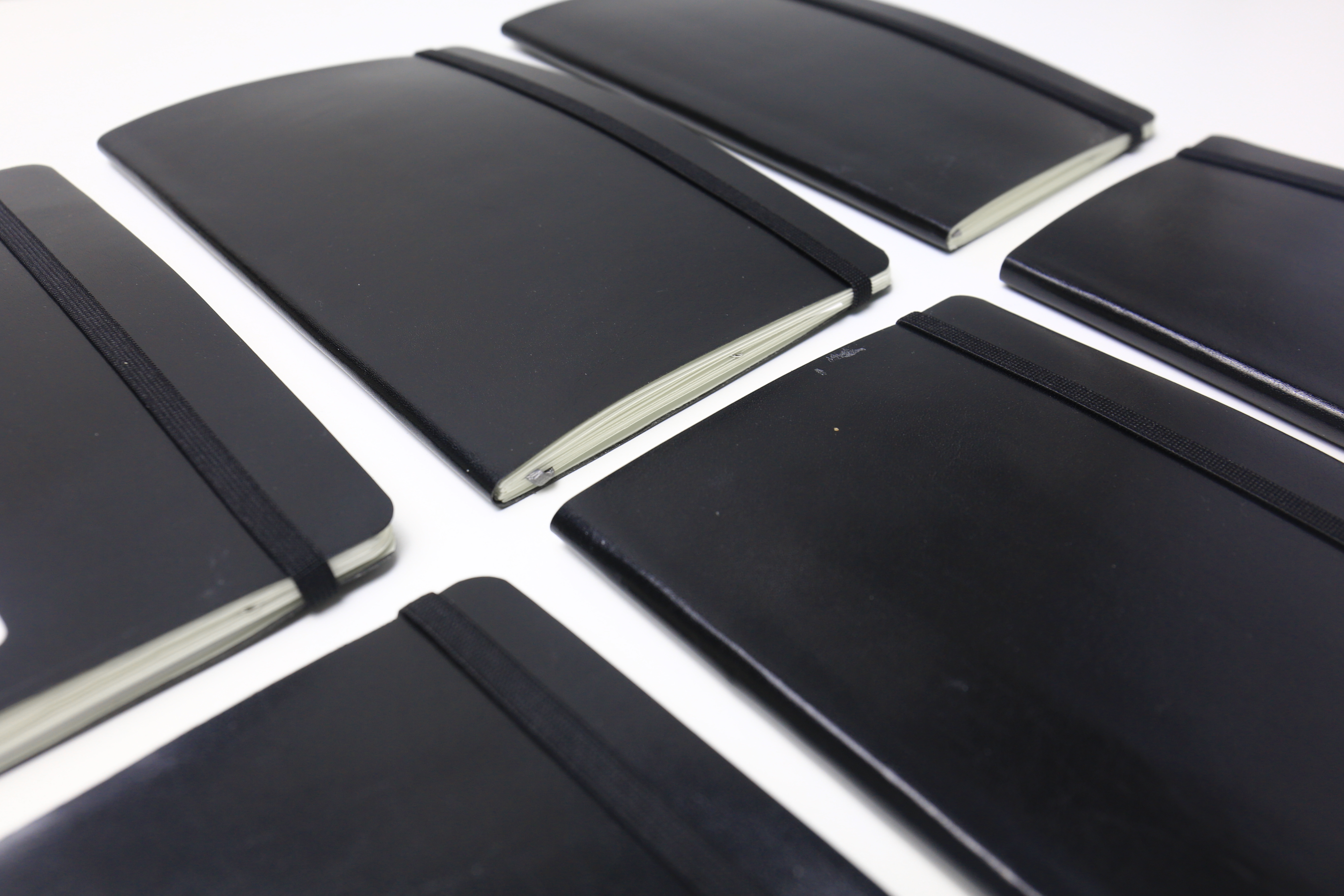 Medium: Leather, Moleskine Paper Stock, Elastics, Ribbon, Strings, Post-It, Postcards, Paper Clip, Tape